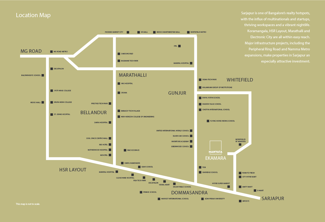 Ekamara by Manyata, an exclusive enclave of premium signature plots located in Sarjapur, Bangalore. This project is designed to elevate the art of living by offering a harmonious blend of timeless aesthetics, nature-infused spaces, and community-driven living.